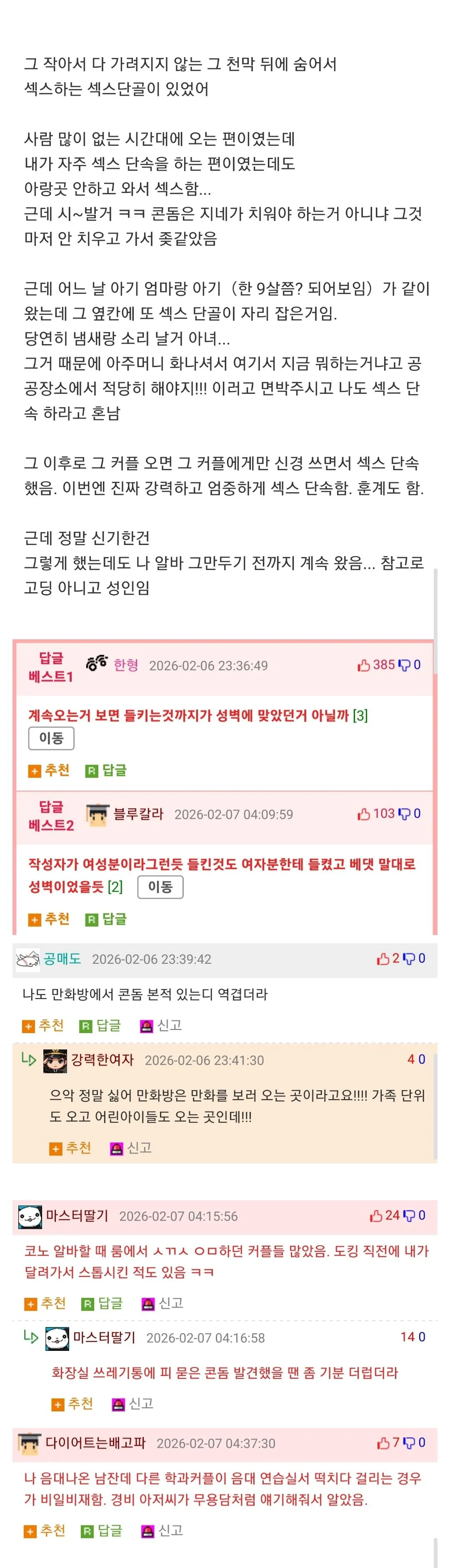 주기적으로 섹스단속을 했다는 만화카페 알바 경험담