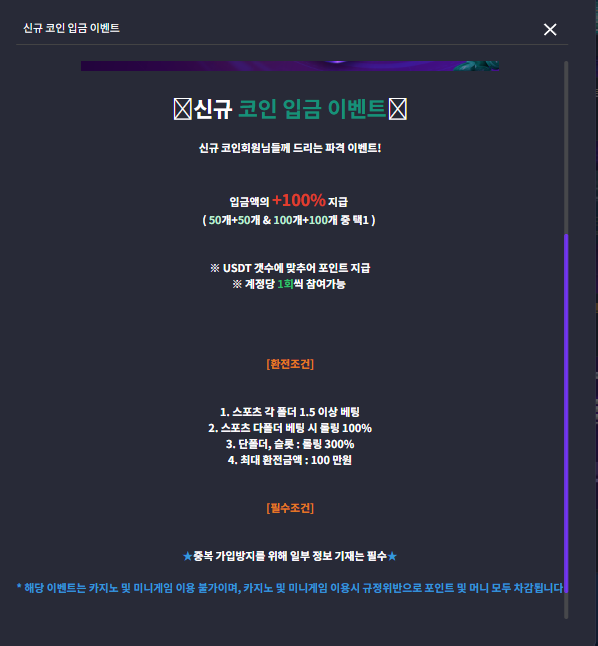 코인으로 첫충시 2배 이벤트 이거 정말 어마어마하네요.. 처음 가입한 회원이 정착하기가 너무 좋습니다