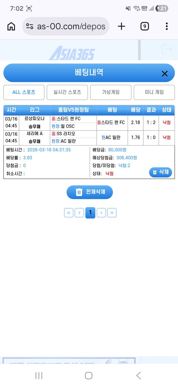 스포츠 베팅을 해보려 아시아365를 이용해보았습니다